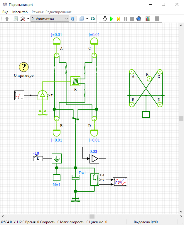 - ведущего шкива, моделируемого блоком "Барабан с веревкой"