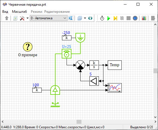 Данный проект демонстрирует возможности библиотеки "Механика" по моделированию червячной передачи с учетом нагрева от трения.