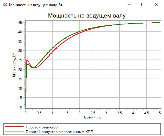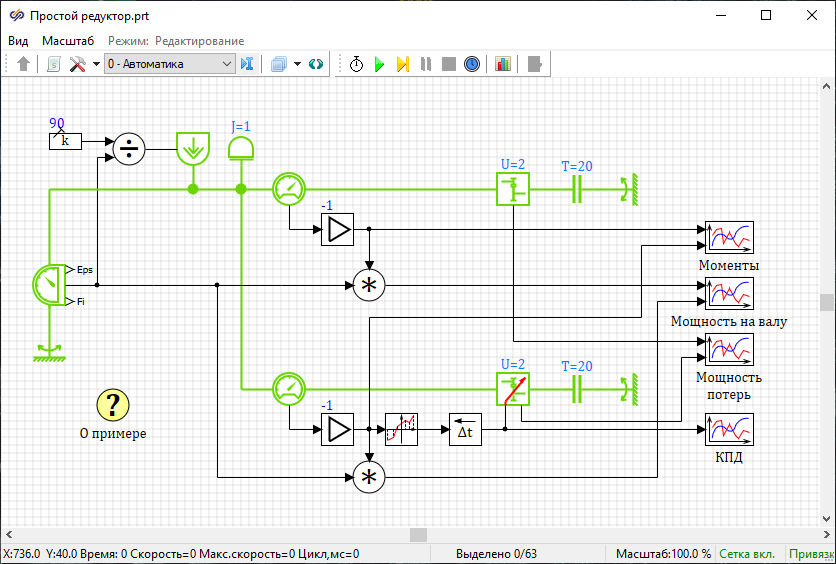 Данный проект демонстрирует возможности библиотеки "Механика" по моделированию двух одинаковых редукторов с постоянным и переменным КПД.