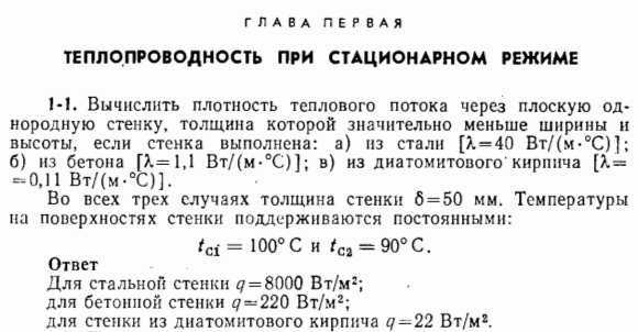 Вычислить плотность теплового потока через плоскую однородную стенку, толщина которой