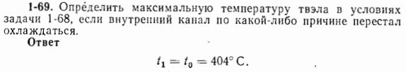 Определить максимальную температуру твэла в условиях предыдущей задачи, если внутренний канал по какой-либо причине перестал охлаждаться.