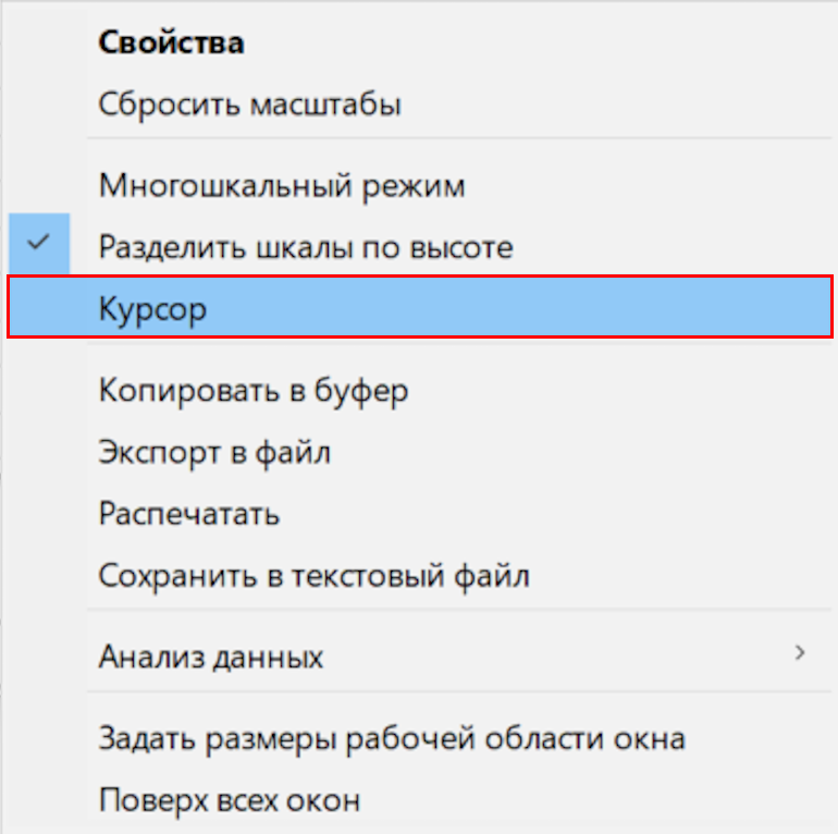 Рис. 1. Пункт "Курсор" в контекстном меню