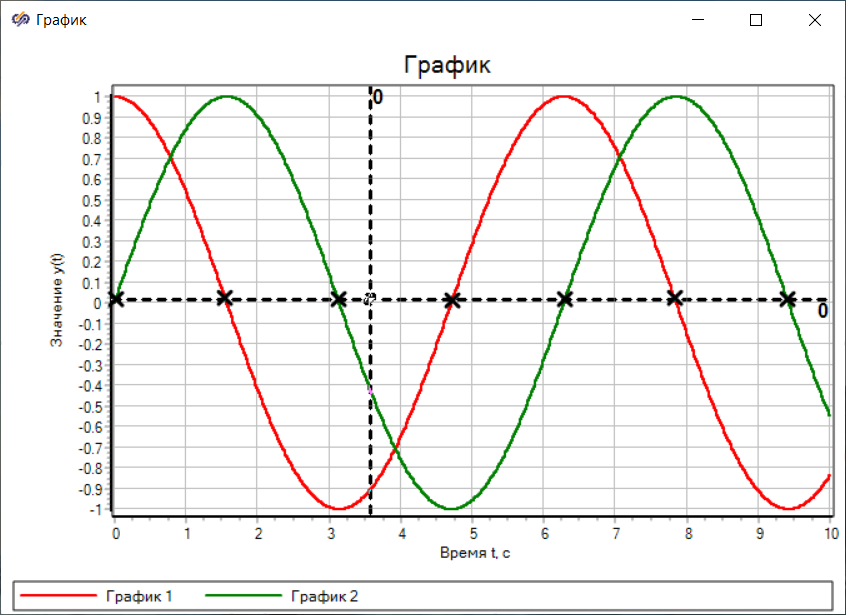 Рис. 7. Задание координат пересечения курсора с графиком Редактируемый курсор выделяется черным цветом.