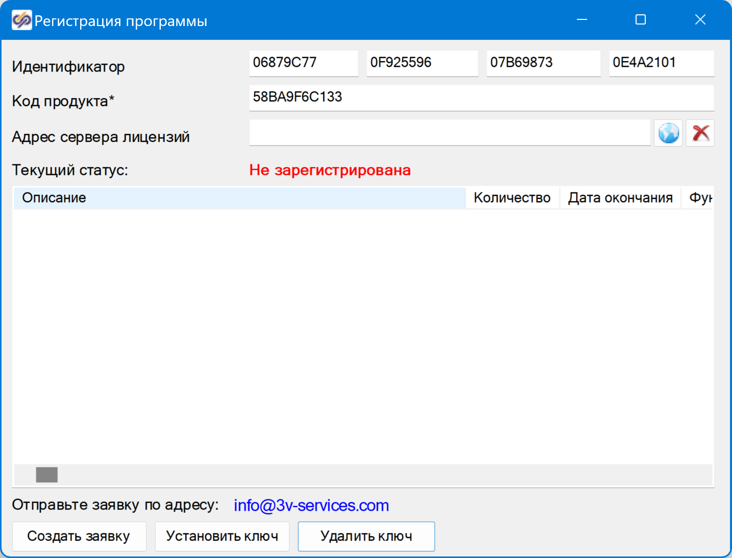 сформировать заявку на получение лицензионного ключа, установить или удалить его, а также