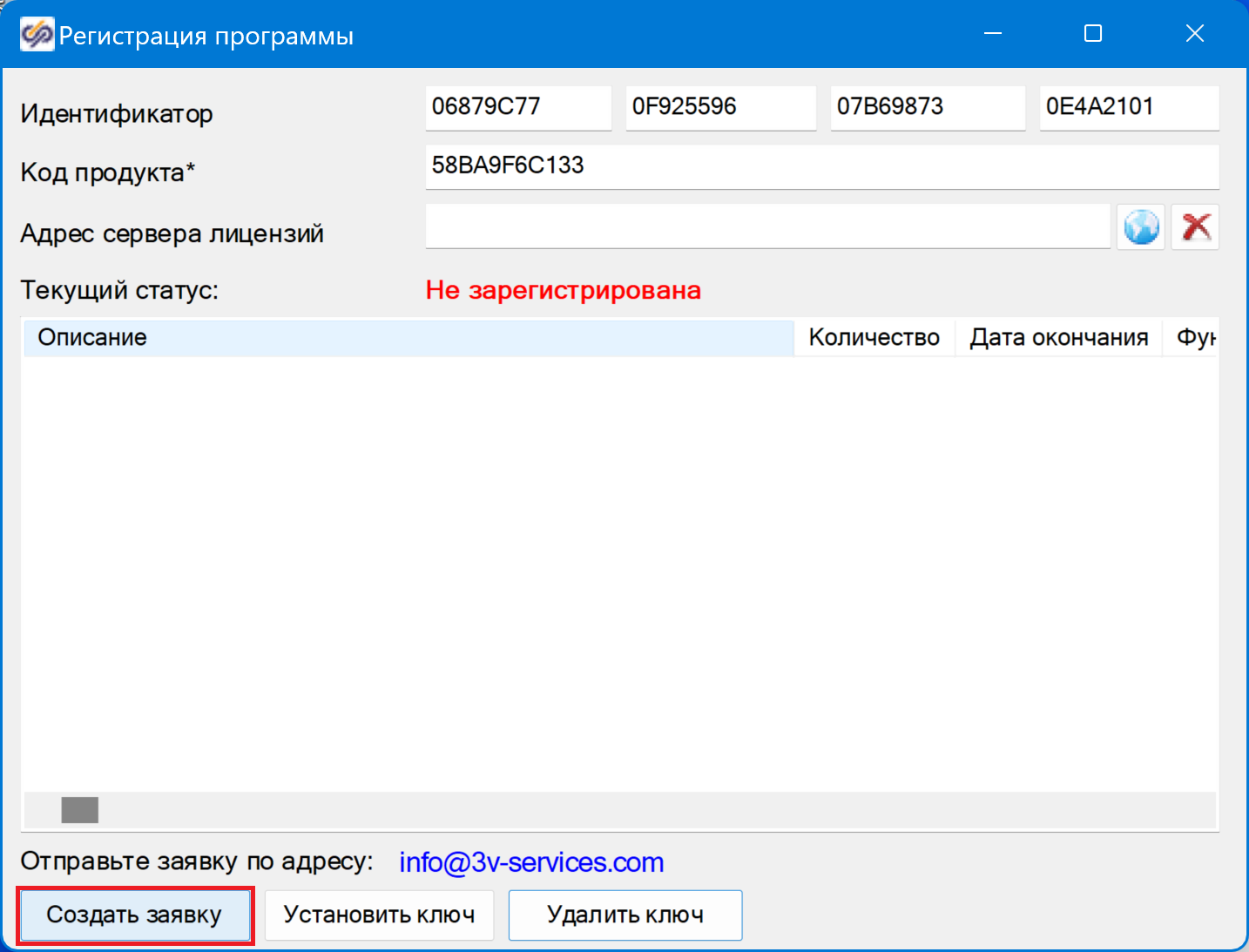 Для получения лицензионного ключа необходимо сформировать файл заявки.