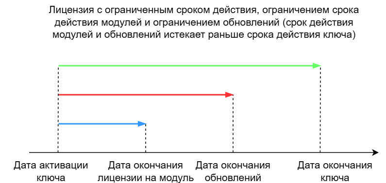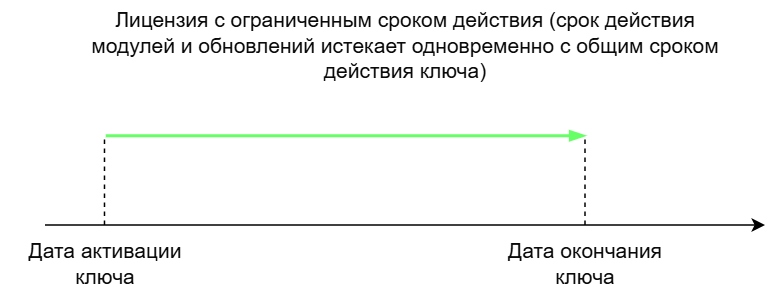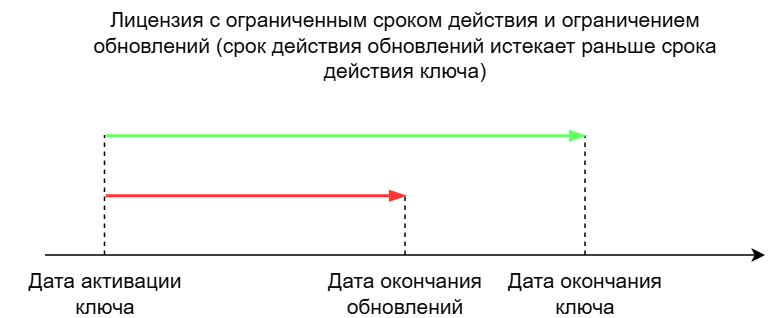 Лицензионный ключ может иметь ограниченный срок действия, при этом срок действия обновлений может истекать раньше срока действия лицензионного ключа.