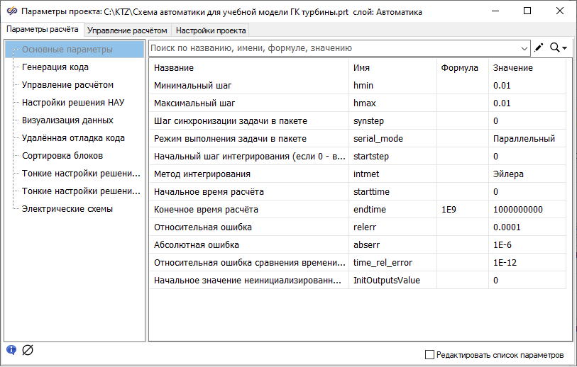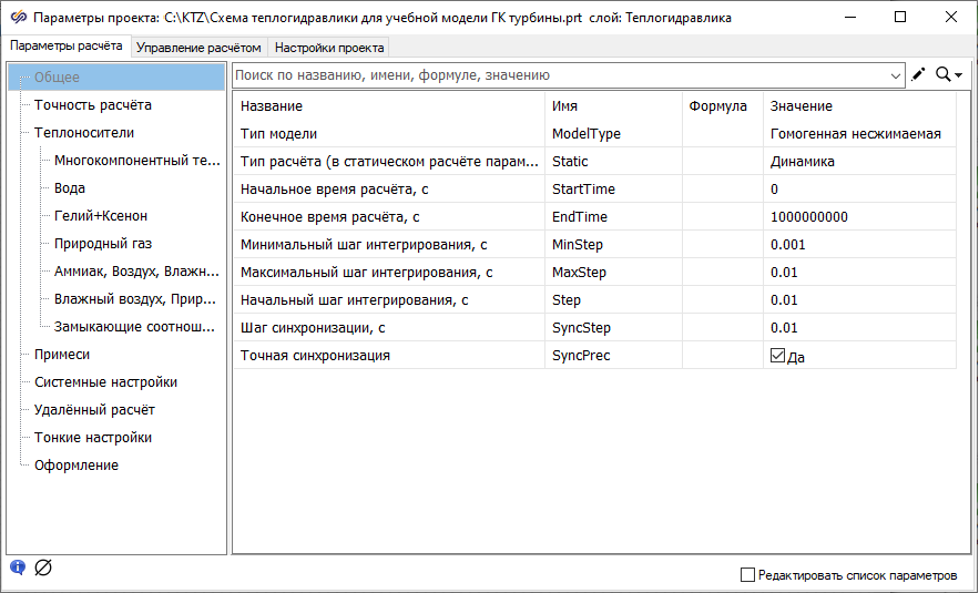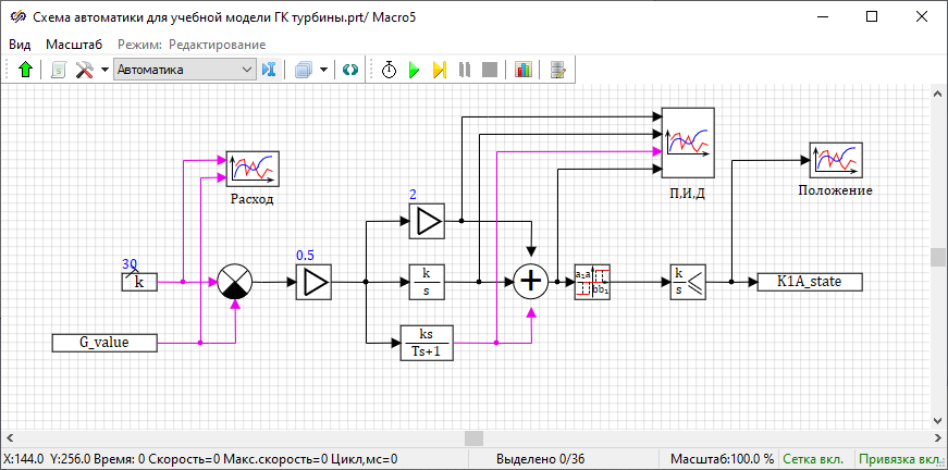 Совместный расчет схемы теплогидравлики и автоматики
