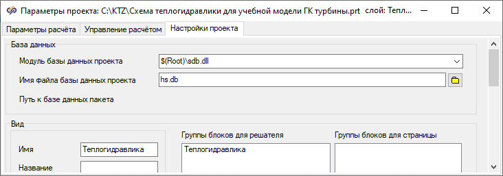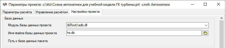 - В строке редактирования "Имя файла базы данных проекта" надо ввести hs.db (подключаем к этому проекту уже созданный файл базы данных сигналов из модели теплогидравлики)