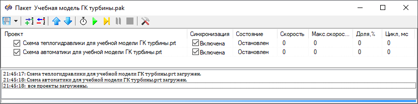 Теперь, когда готов один алгоритм (для клапана "К1А"), можно для тестирования запустить совместный расчет двух проектов. Для этого необходимо чтобы в одном пакетном "pak"-файле были объединены два наших проекта. Сделайте это, при помощи кнопки Добавить проект на панели проектов, если пока что еще не сделали: