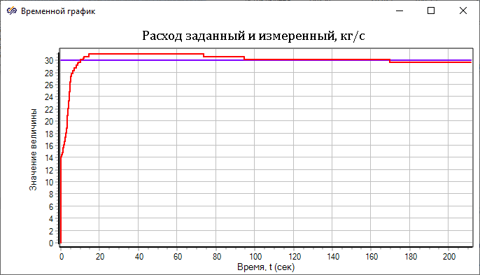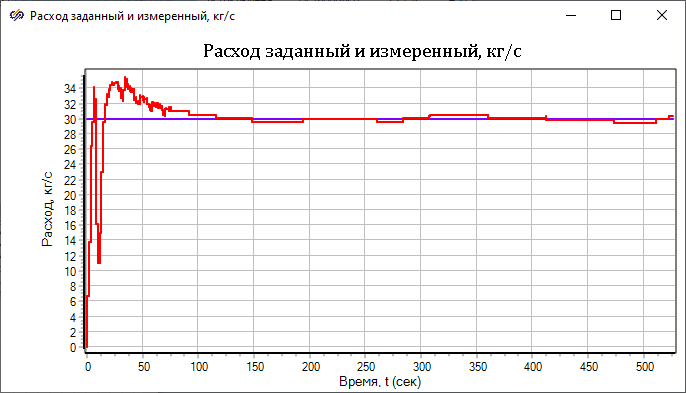 Если вывести значение расхода и положение клапана на графики, то вы увидите примерно такую картину, как на рисунках (см. Рис. 14 и Рис. 15).