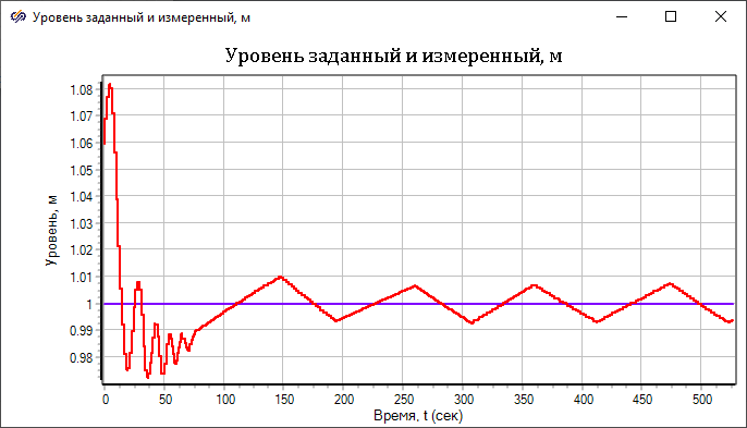 Но, из-за постоянного и непрекращающегося интегрирования рассогласования в регуляторе, происходит периодическое изменение команды на двигатель клапанов и перерегулирование.