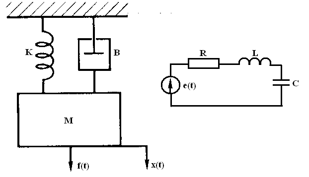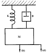 Рассматривается механическая система, состоящей из груза с массой M, пружины с жесткостью K и демпфера с коэффициентом демпфирования B (Рис. 1). Положение груза описывается обобщенной координатой x. Движение механической системы под действием внешней силы f(t) описывается дифференциальным уравнением: