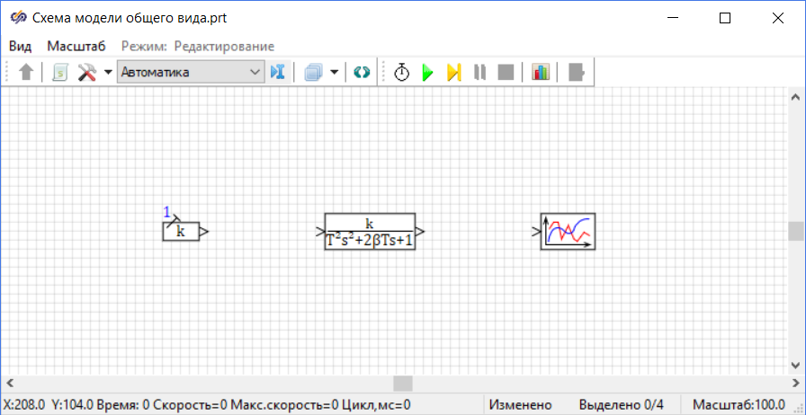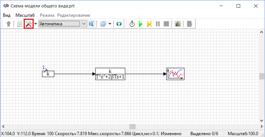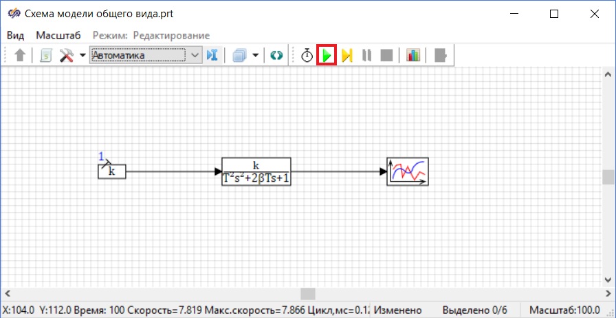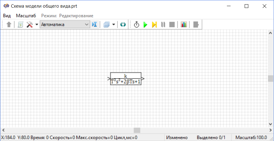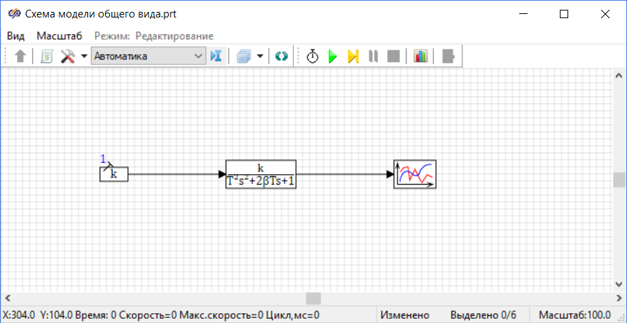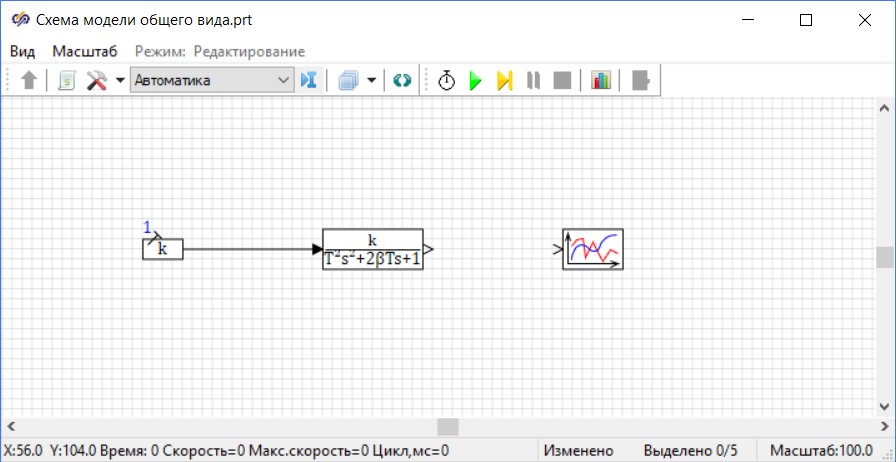 Рис. 6. Окно проекта с установленным блоком "Колебательное звено".