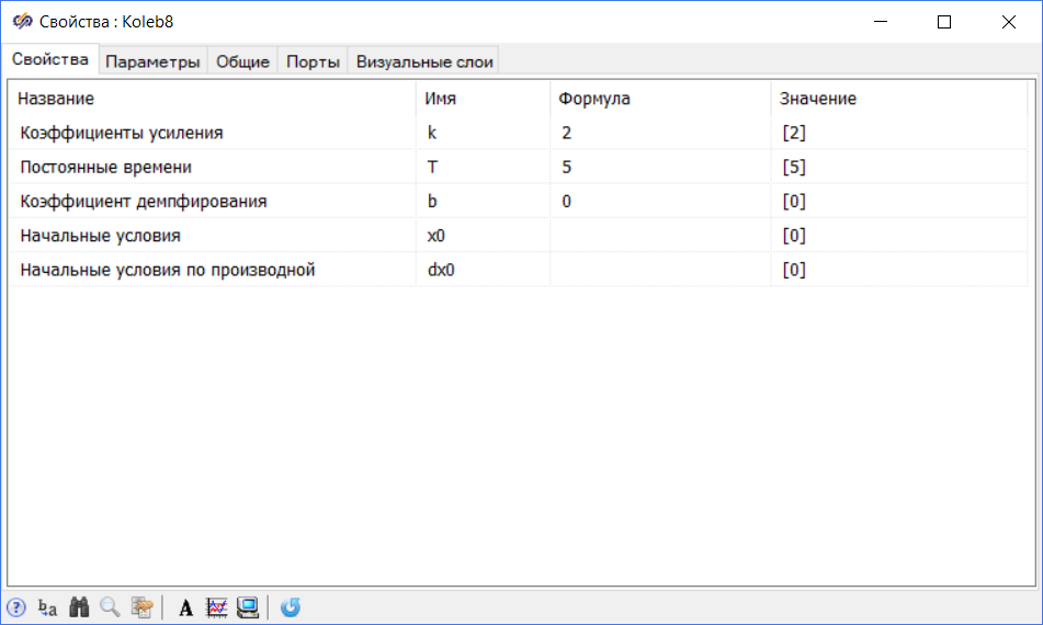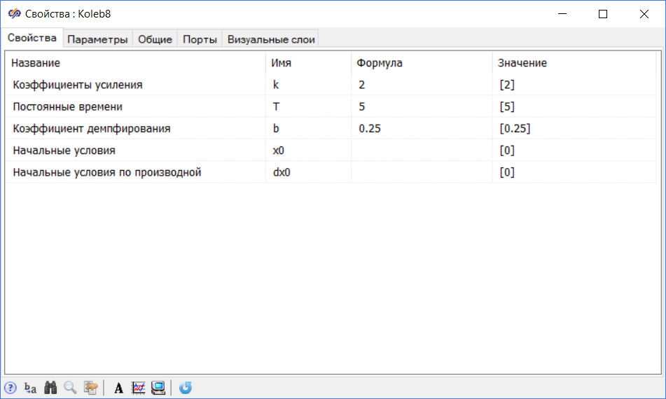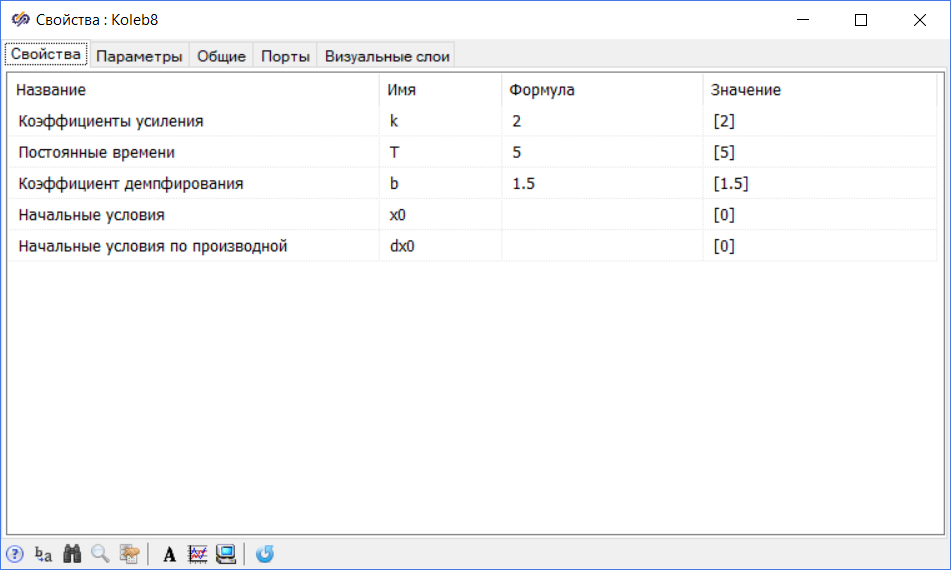 Рис. 12. Окно "Свойства" блока "Колебательное звено" с новыми значениями свойств.