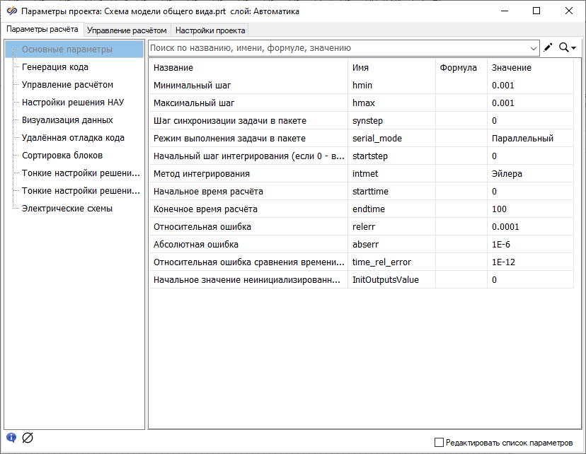 Закрыть окно Параметры проекта, при этом внесенные изменения сохраняются.