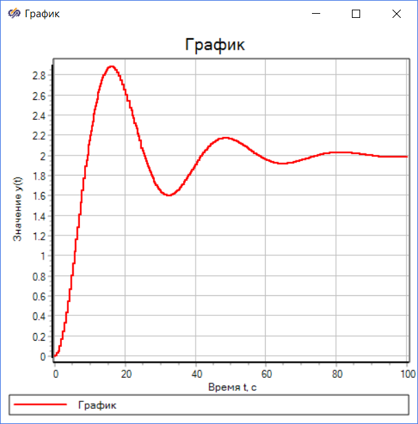 График переходной функции колебательного звена имеет вид колебательного процесса, поскольку коэффициент демпфирования равен "0.25".