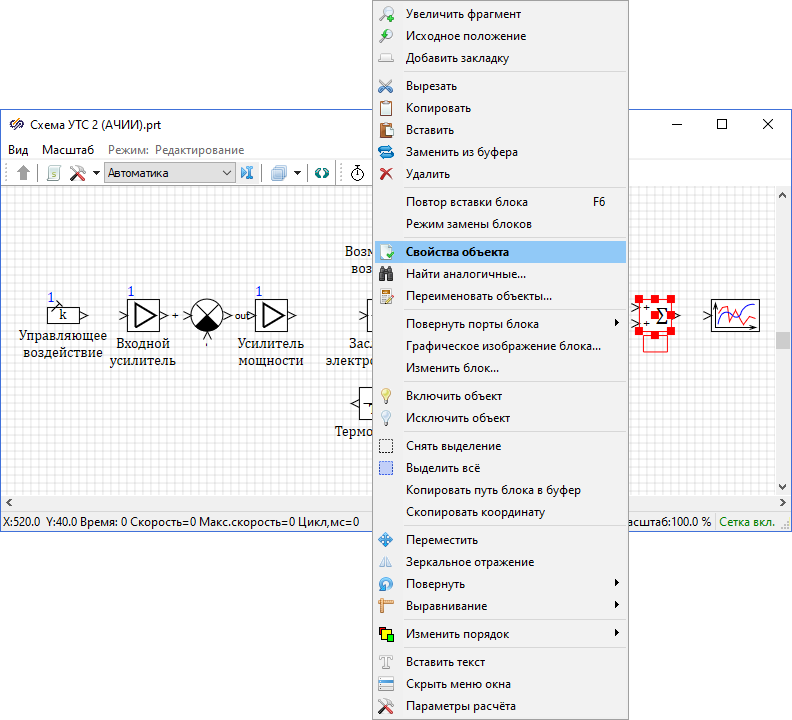 Рис. 9. Окно проекта с контекстным меню блока.