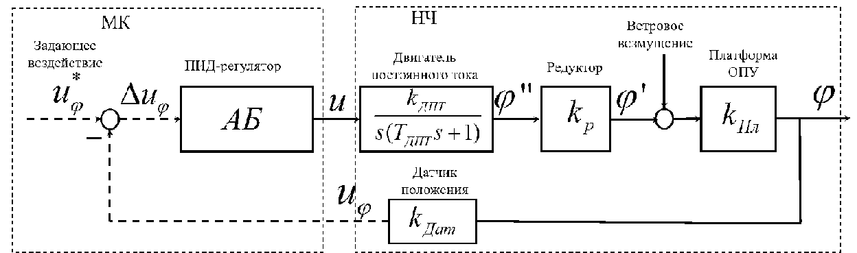 В данной работе предполагается, что контуры можно считать независимыми, и для простоты рассматривается только один контур – контур управления ОПУ по азимуту.