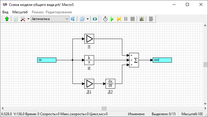 Рис. 3. Структурная схема алгоритмического блока (ПИД-регулятор). - В окно проекта следует добавить блоки: