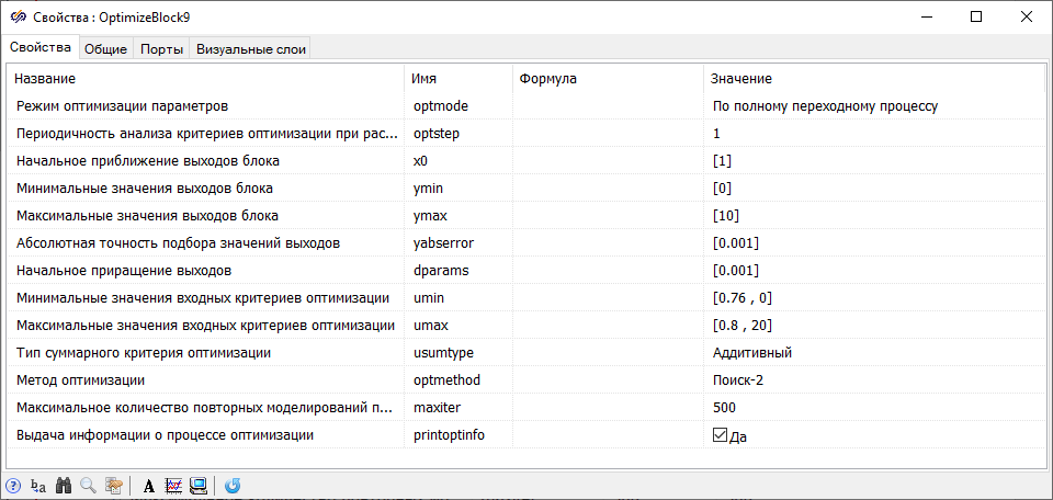 - Поместить на схему блок Оптимизатор и ввести в его настройках