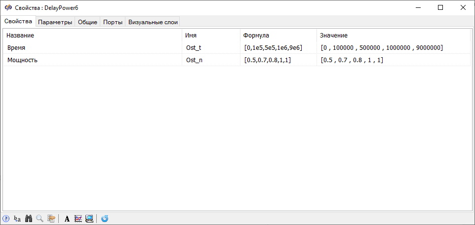 Закрыть скрипт проекта и задать свойства блоков структурной схемы. В блоке с подписью "6 групп" (описывающем шести групповую модель кинетики нейтронов) изменение свойств не требуется.