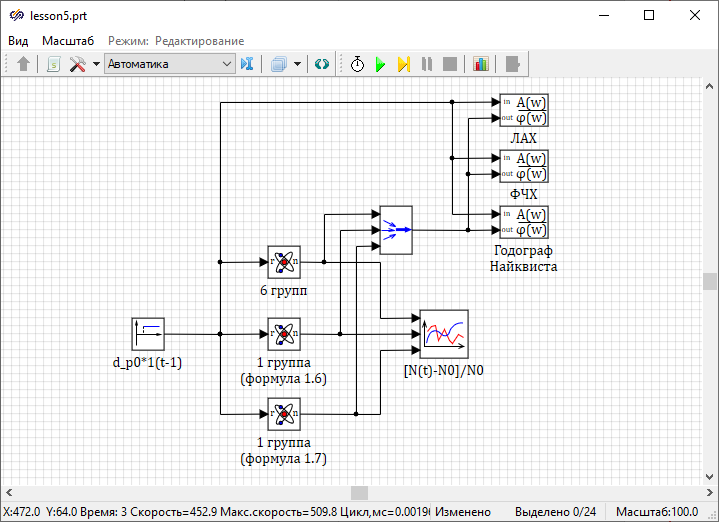 В предыдущих лабораторных работах освоили некоторые из методов работы в SimInTech. В данной лабораторной работе можно освоить ряд новых методов работы, а также выполнить самостоятельное численное исследование динамических характеристик упрощенной математической модели нелинейной САР ядерного реактора с регулятором релейного типа.