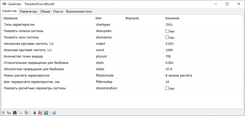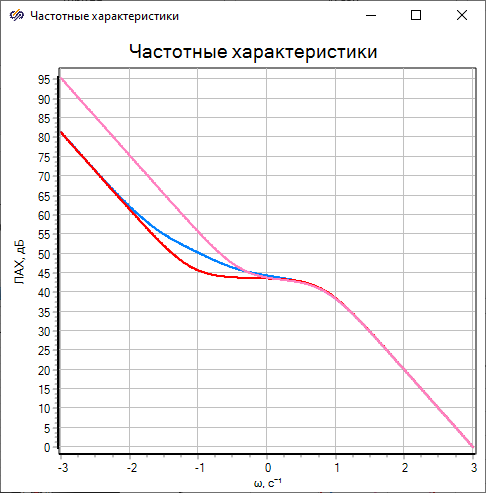 Аналогично блоку с подписью "ЛАХ" задать свойства блоку с подписью "ФЧХ" и блоку с подписью "Годограф Найквиста", изменив значение параметра "Тип характеристик" на "ФЧХ" и "Годограф Найквиста" соответственно.