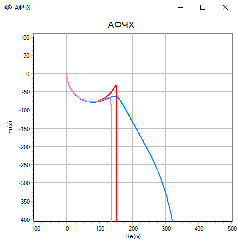 На рисунке (Рис. 11) синей линией двойной толщины показан годограф для классической модели кинетики нейтронов, красной линией – для одногрупповой модели с эффективной постоянной распада Lam, рассчитанной по соотношению, а фиолетовой линией – для одногрупповой модели с эффективной постоянной распада Lam_1, рассчитанной по соотношению. Анализ данных показывает, что в области высоких частот все три годографа почти совпадают, а в области низких частот – заметно количественное расхождение.