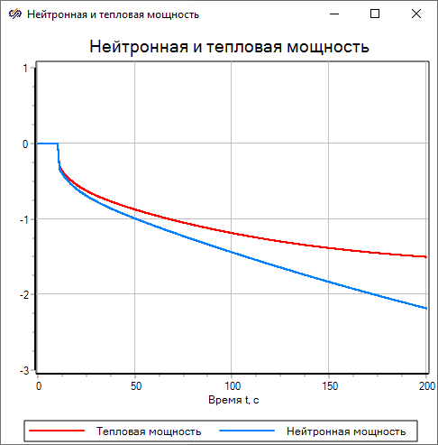 - сравнение переходных характеристик кинетики ядерного реактора без учета и с учетом остаточного энерговыделения