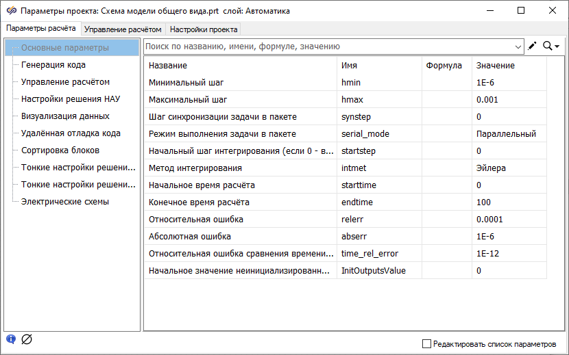 - На верхней панели окна проекта нажать на кнопку Параметры расчёта для открытия параметров проекта