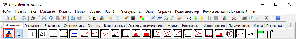 - В главном окне SimInTech в палитре блоков выбрать вкладку Панель примитивов (Рисунок