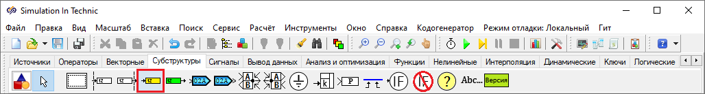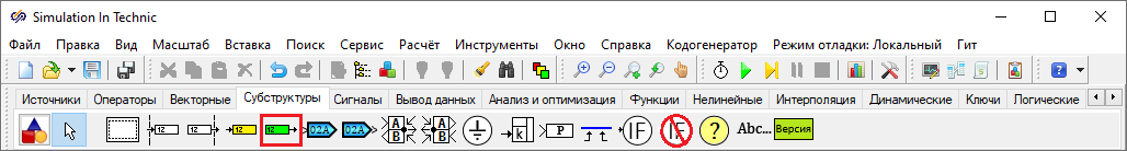 Рис. 26. Вкладка "Субструктуры" с выбранным блоком "Из памяти". - Выбранный блок необходимо разместить на схеме следующим образом (Рис. 27):