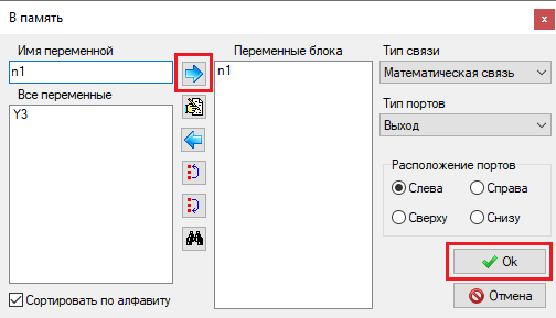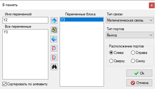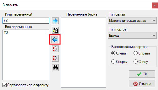 "Y3" в столбце "Переменные блока", нажатием стрелки