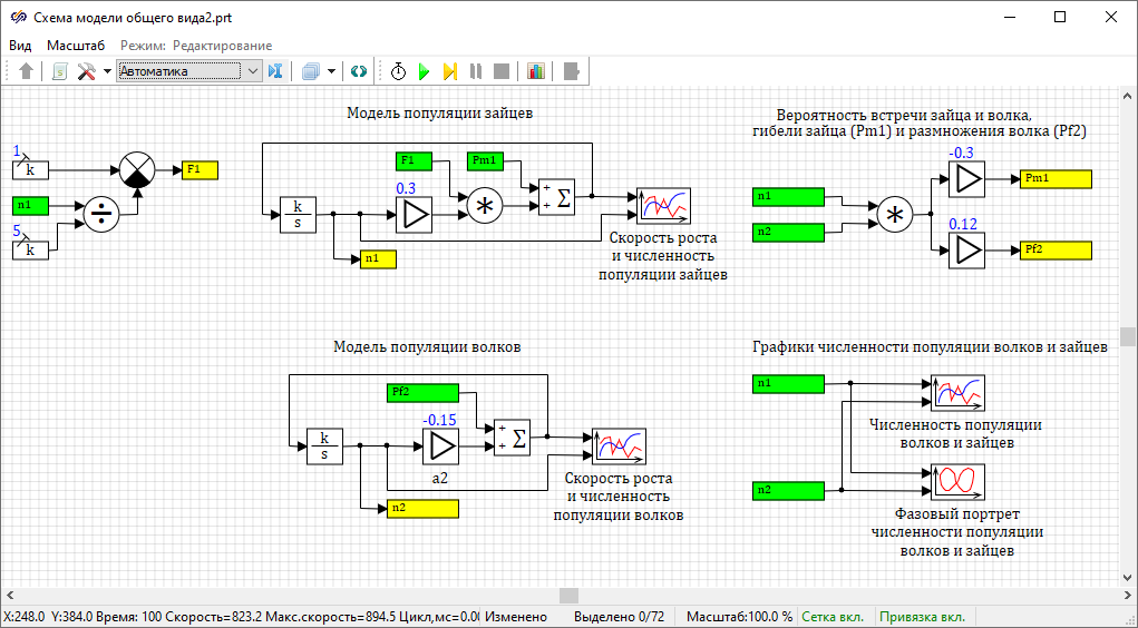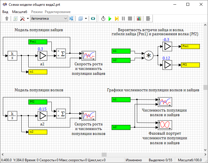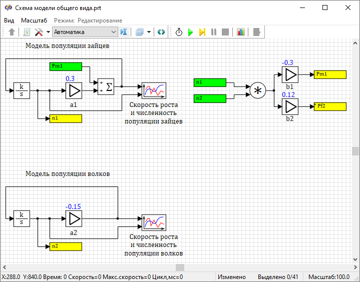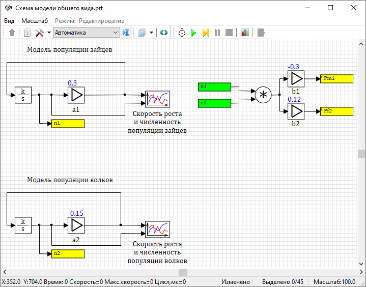 - Ознакомиться с возможностями SimInTech на основе разработки модели "хищник-жертва"