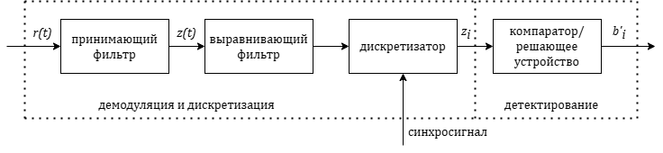 Процессы демодуляции и детектирования определяются как восстановление сигнала и принятие решения относительно битового значения, соответствующего передаваемой посылке.