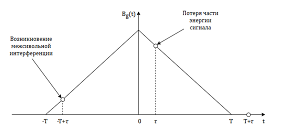 Таким образом, вклад от ожидаемого в данный момент символа an уменьшается с коэффициентом, равным Bg(τ)/Bg(0); кроме того, появляется МСИ от соседних символов ak, k ≠ n.
