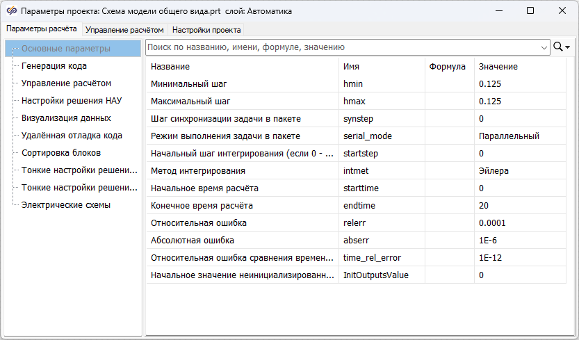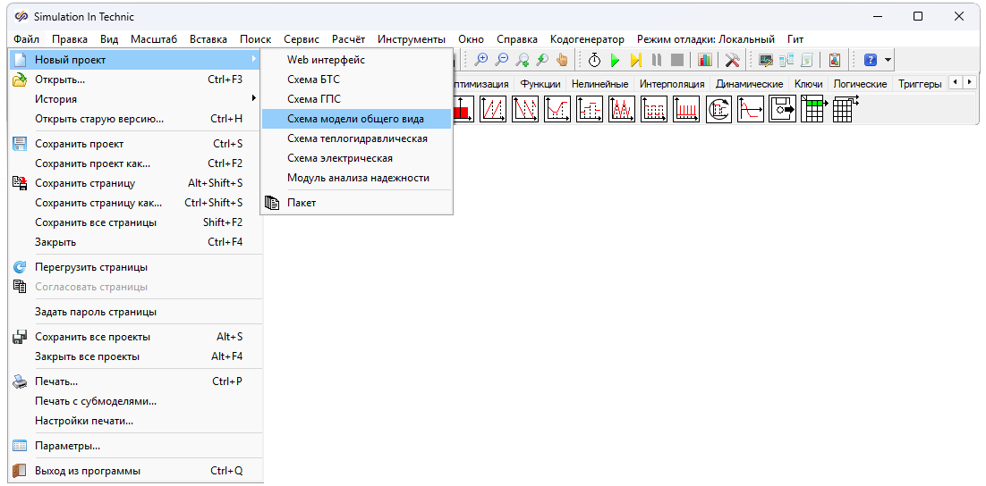 Перед тем, как настроить блок Временной график, необходимо запустить проект на расчет нажатием кнопки Пуск.