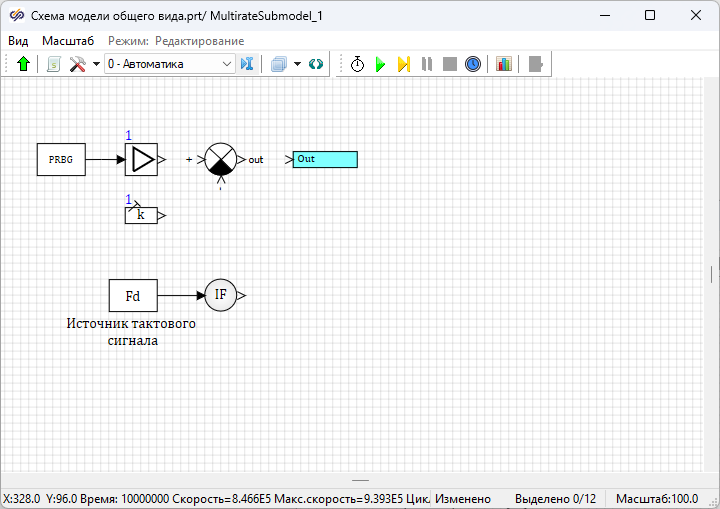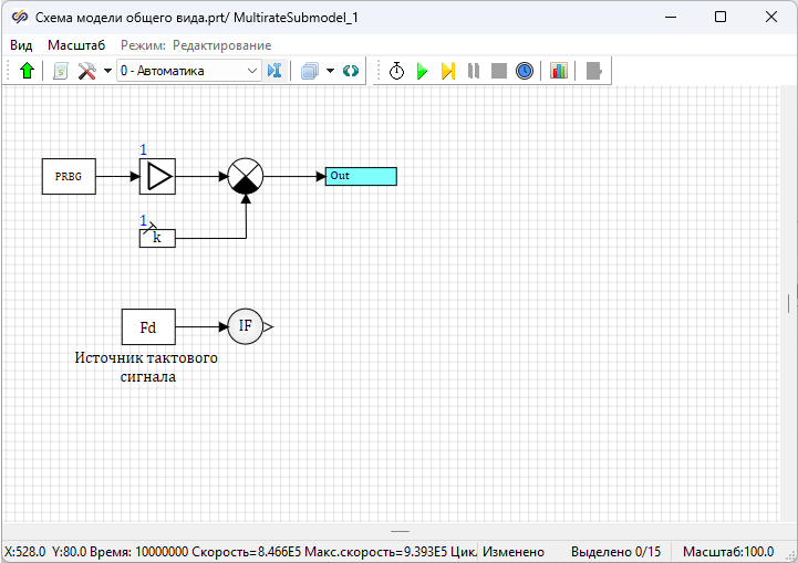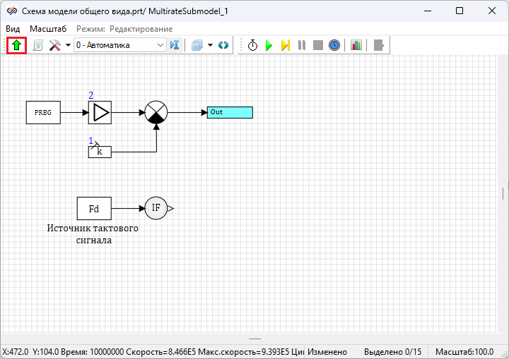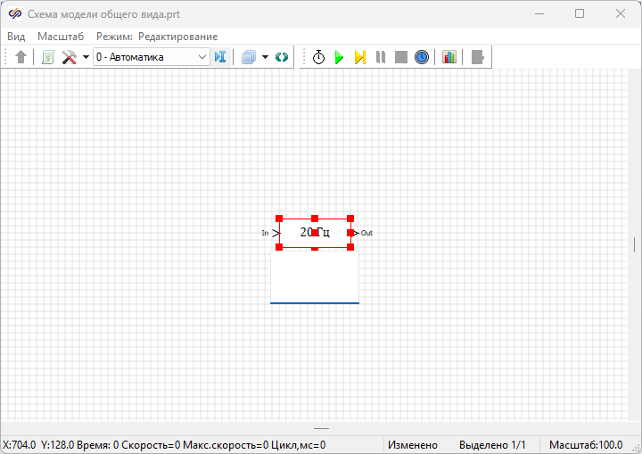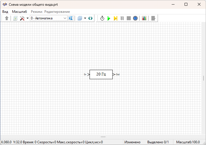 - 1 блок Экстраполятор из вкладки Дискретные. Данный блок реализует экстраполяцию нулевого порядка