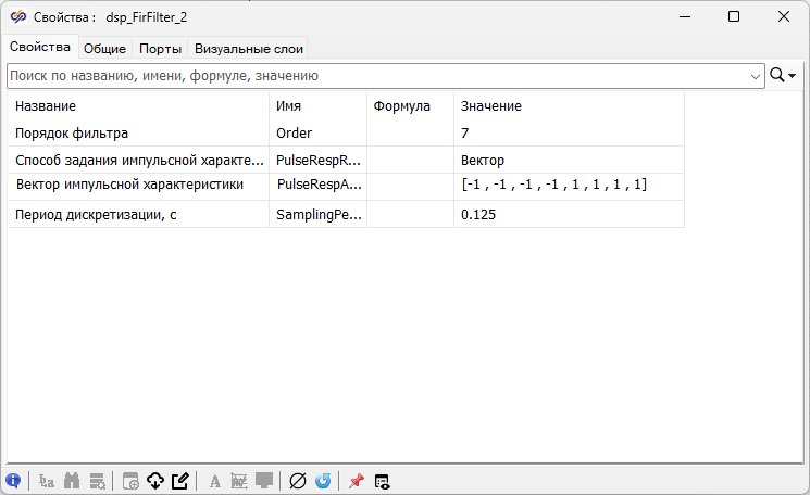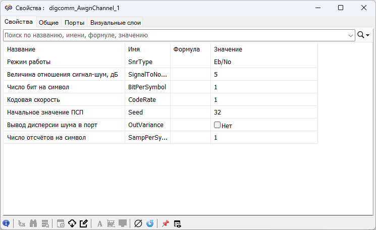 Также в блоках Задержка на период квантования и Экстраполятор следует установить значение свойства "Период квантования" равным "0.125". После чего в блоке Канал с АБГШ с подписью "Канал АБГШ МК" изменить значение свойства "Число отсчетов на символ" с "1" на "8".