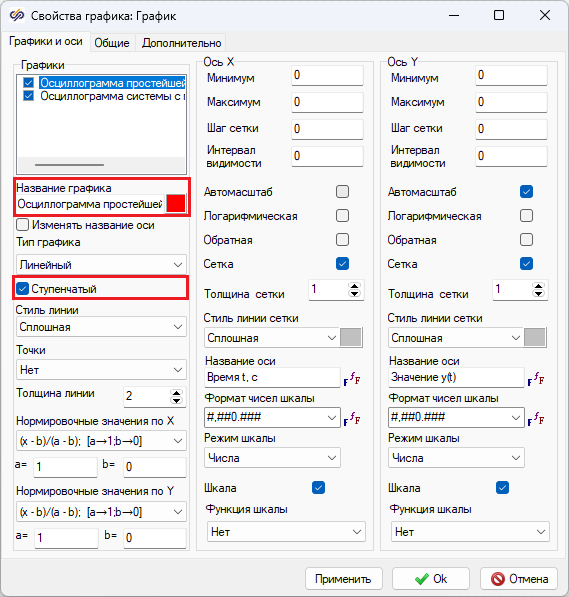 - Для первого графика – "Осциллограмма простейшей системы"