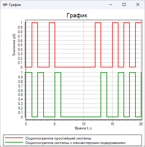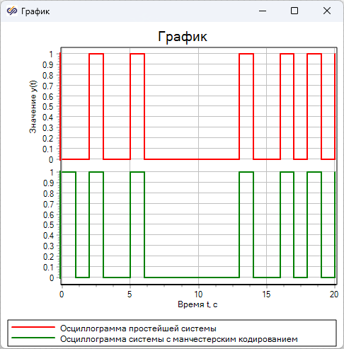 - Для второго графика – "Осциллограмма системы с манчестерским кодированием"