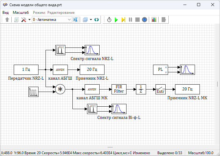 - Разработать простейшую модель системы связи с импульсной модуляцией