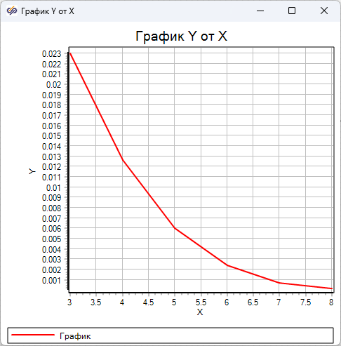y = [0.0656, 0.0365, 0.0177, 0.0071, 0.00218, 0.000492, 8.7e-5, Зе-6];