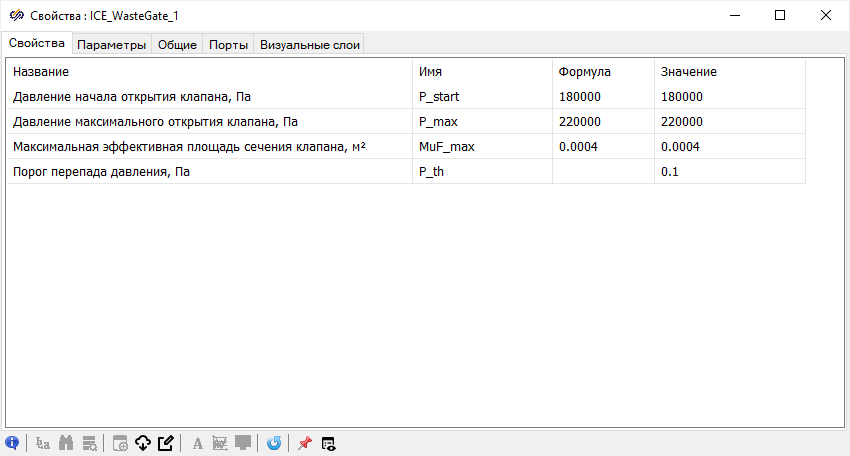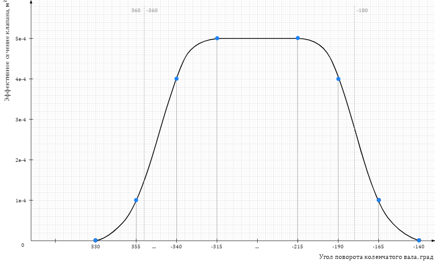 - "Массив эффективных проходных сечений, м²" − "[0, 1e-4, 4e-4, 5e-4, 5e-4, 4e-4, 1e-4, 0]"