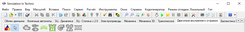 - В главном окне SimInTech в палитре блоков выбрать вкладку Двигатели внутреннего сгорания (Рис. 3)