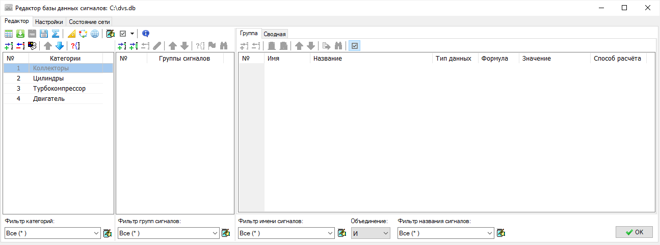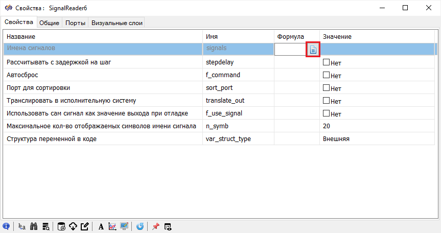После этого значение свойства "Имена сигналов" автоматически заполнится именами всех сигналов, удовлетворяющих условиям запроса.