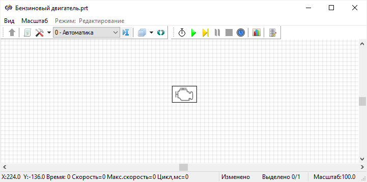 Рис. 4. Блок "Двигатель" в рабочем поле окна проекта.