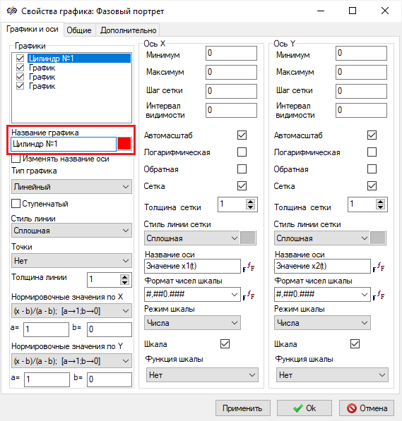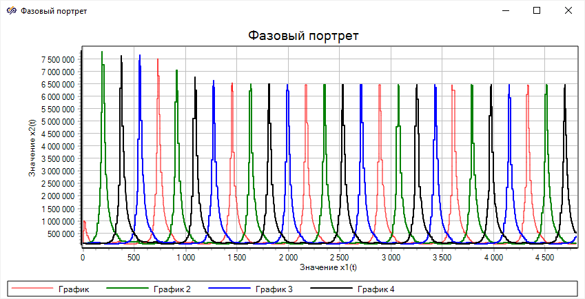 - 1 блок Временной график и 2 блока Фазовый портрет из вкладки Вывод данных − данные блоки необходимы для построения графиков