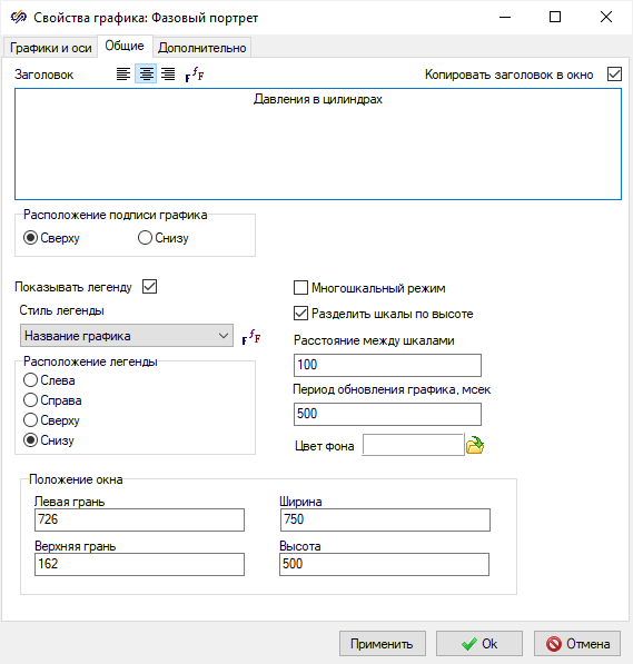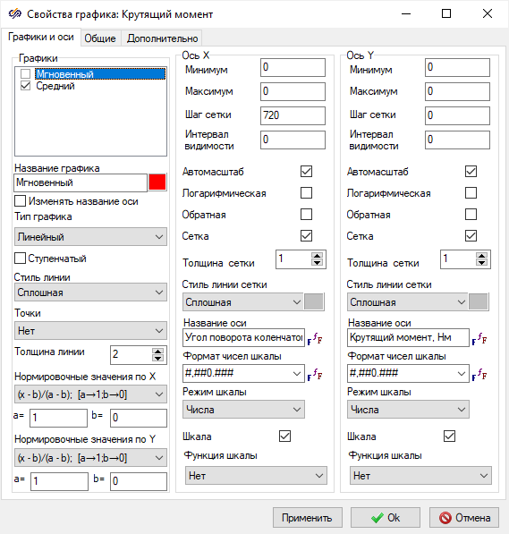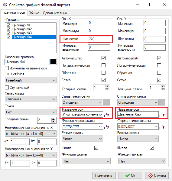 - "Название оси" − "Угол поворота коленчатого вала, град"