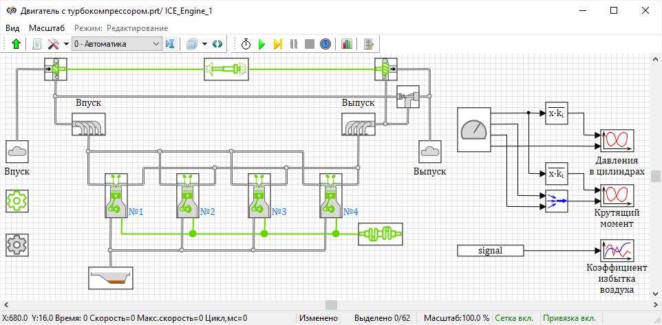 Задание 2. Разработка модели двигателя внутреннего сгорания с турбокомпрессором